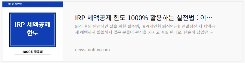 | IRP 세액공제 한도 1000% 활용하는 실전법 : 이걸로 마무리 하자! (1) | 2025.07.24 |