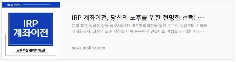| IRP 계좌이전, 당신의 노후를 위한 현명한 선택! 지금 바로 시작하세요! (1) | 2025.07.21 |